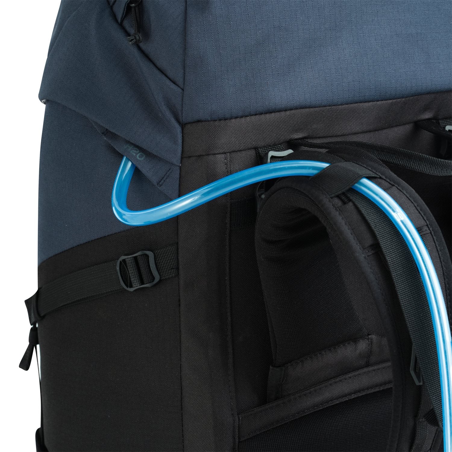 The backpack is compatible with any drinking system which can be hanged on a velcro strap at the inside and contains a designated opening for a drinking tube. Additionally, both sides of the backpack are equipped with mesh pockets in which you can store your drinking bottles.