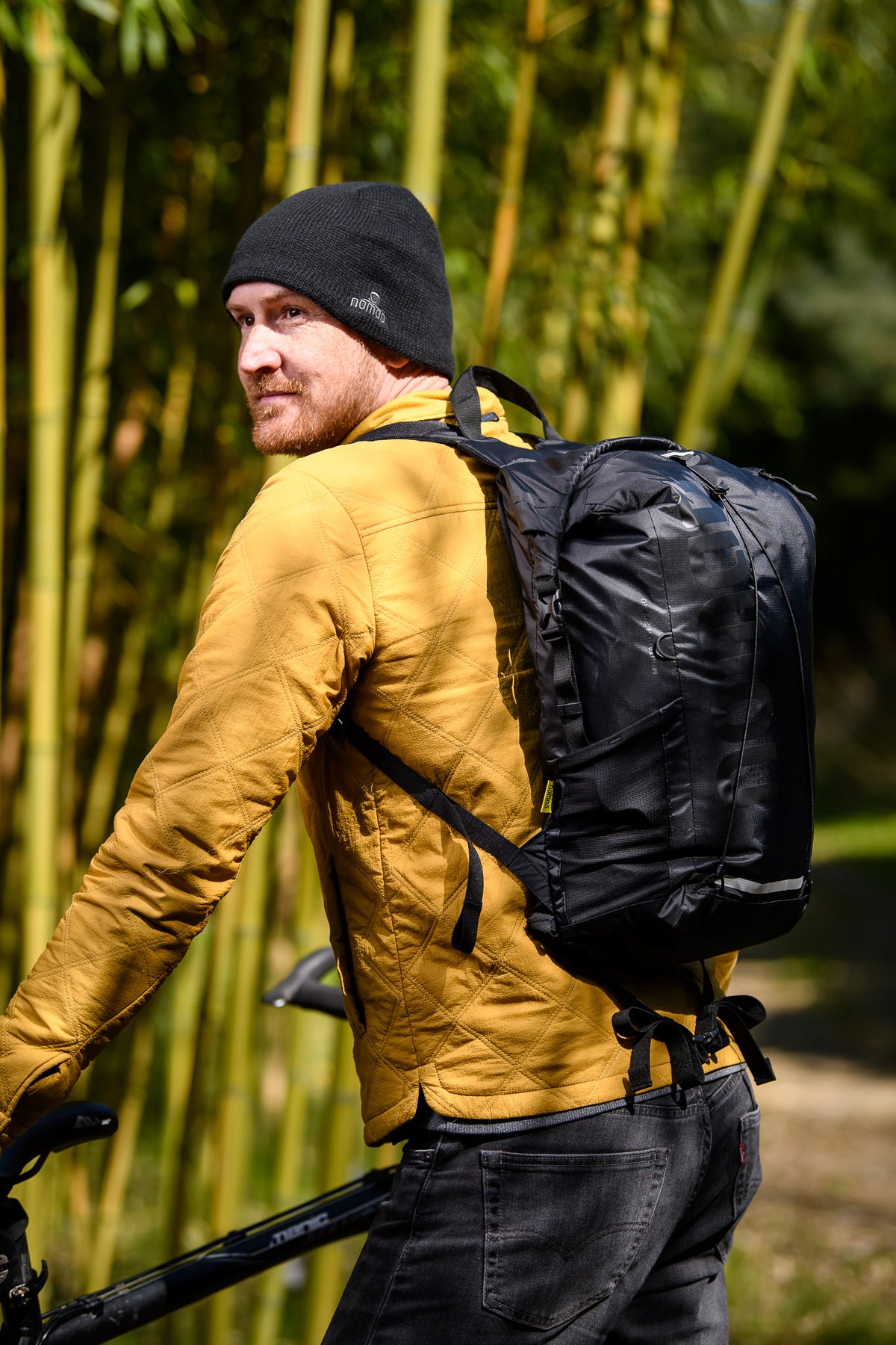 Thanks to its 25 litres capacity, this backpack is both compact and roomy enough to carry everything you will need for a day’s outing. The backpack weighs only 530 grams, so hardly adds any extra weight to your travel pack. There are two compartments on the inside, one of which has a pocket for a 15.4 inch laptop sleeve or a water bag. At the front is a large zipped compartment, complete with a key clip. To close off the top of the backpack, simply roll up the so-called ‘rolltop’ two or three times and secure it using the clip. Combined with the strong, tear-resistant material, the rolltop ensures that the Mahon Pro 25 is completely waterproof.
