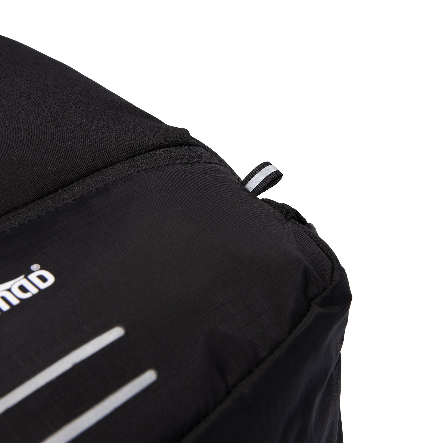 With a capacity of 30 litres, this bag is compact yet roomy enough to carry everything you need for a day’s outing. The large main compartment can be zipped open completely, so it’s easy to access all your gear – even the lunch box that is stowed away right at the bottom. When you zip open the main compartment, you will find a handy inner compartment for smaller belongings such as chargers or mobile phone and you can also keep your keys safe on the key clip provided. And there’s more – have you spotted those zips at the front and on top? They hide two more storage compartments. This bag is roomy enough to transport a laptop and is compatible with our 15.4 inch NOMAD laptop sleeve. It weighs only 735 grams, so it adds hardly any extra weight.