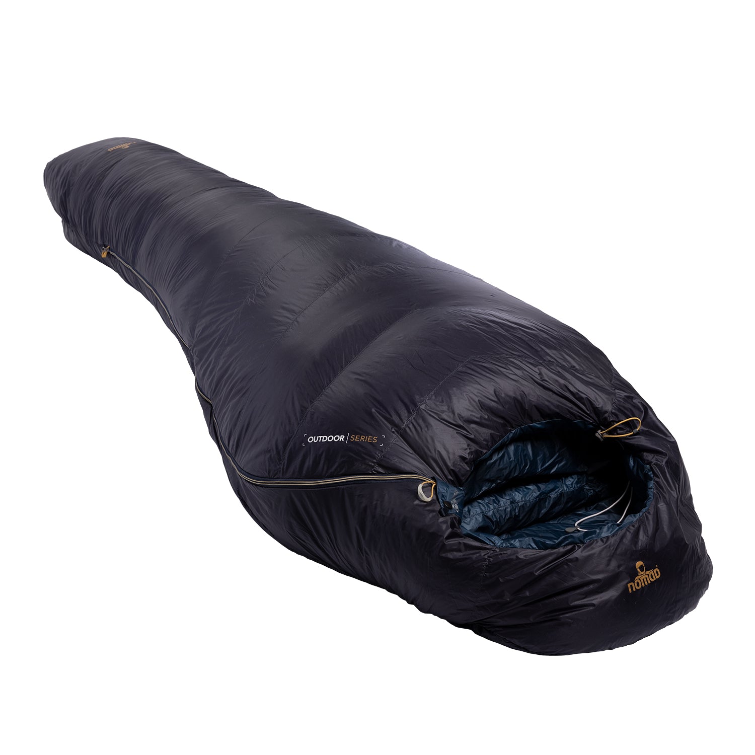 If you are looking for a warm, ultra-light and extra-large mummy sleeping bag that you can take along on your travels in a compact size, you are just right selecting the NOMAD® Orion 400 XL. This sleeping bag weighs only 760 grams, and thanks to its compact packed size you can easily take it with you in your rucksack. Ideal for backpacking travels, hikes through the mountains or long bicycle rides where every gram counts.