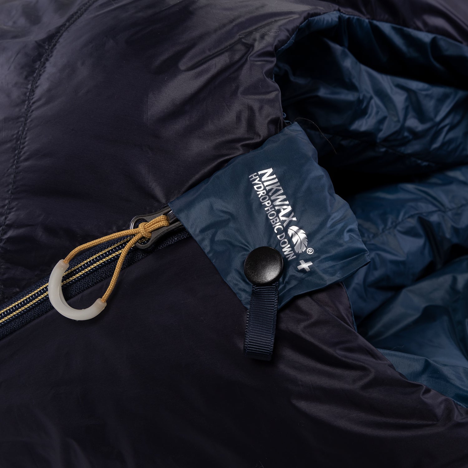 The Orion 400 XL comes with a comfortable hood and padded neck collar, each with its own pull cord so that you can tighten them independently from one another. By tightening the hood more closely, more warmth can be retained around your head, and the padded neck collar means that valuable body warmth cannot escape through the upper opening. It also keeps the neck nice and warm.
