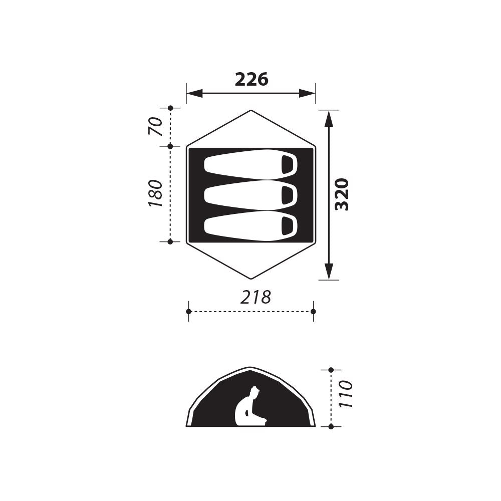 Our Jade 3 Premium tent is compact, but gives a lot of interior space thanks to its clever construction. Because of this construction, the bottom of the tent rises less steeply and the side walls are vertical, both of which provide more space at your feet and head. This also gives you a lot more space when sitting upright than tents that run in a dome.